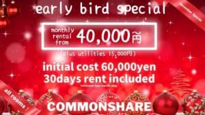 First 30 days rental fee on any property, only 60,000yen, all inclusive!